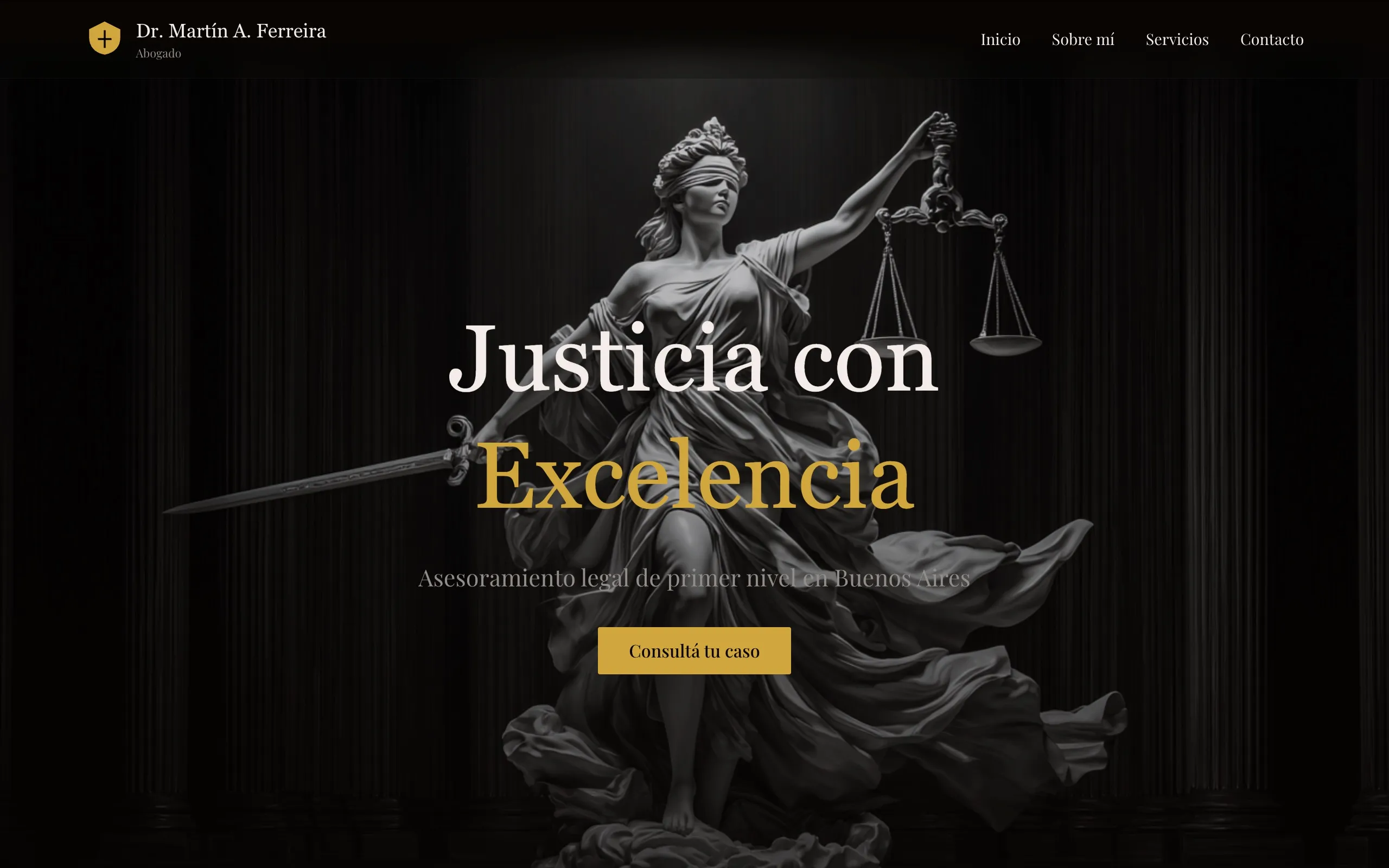Sitio web profesional para estudio jurídico con información de servicios legales.